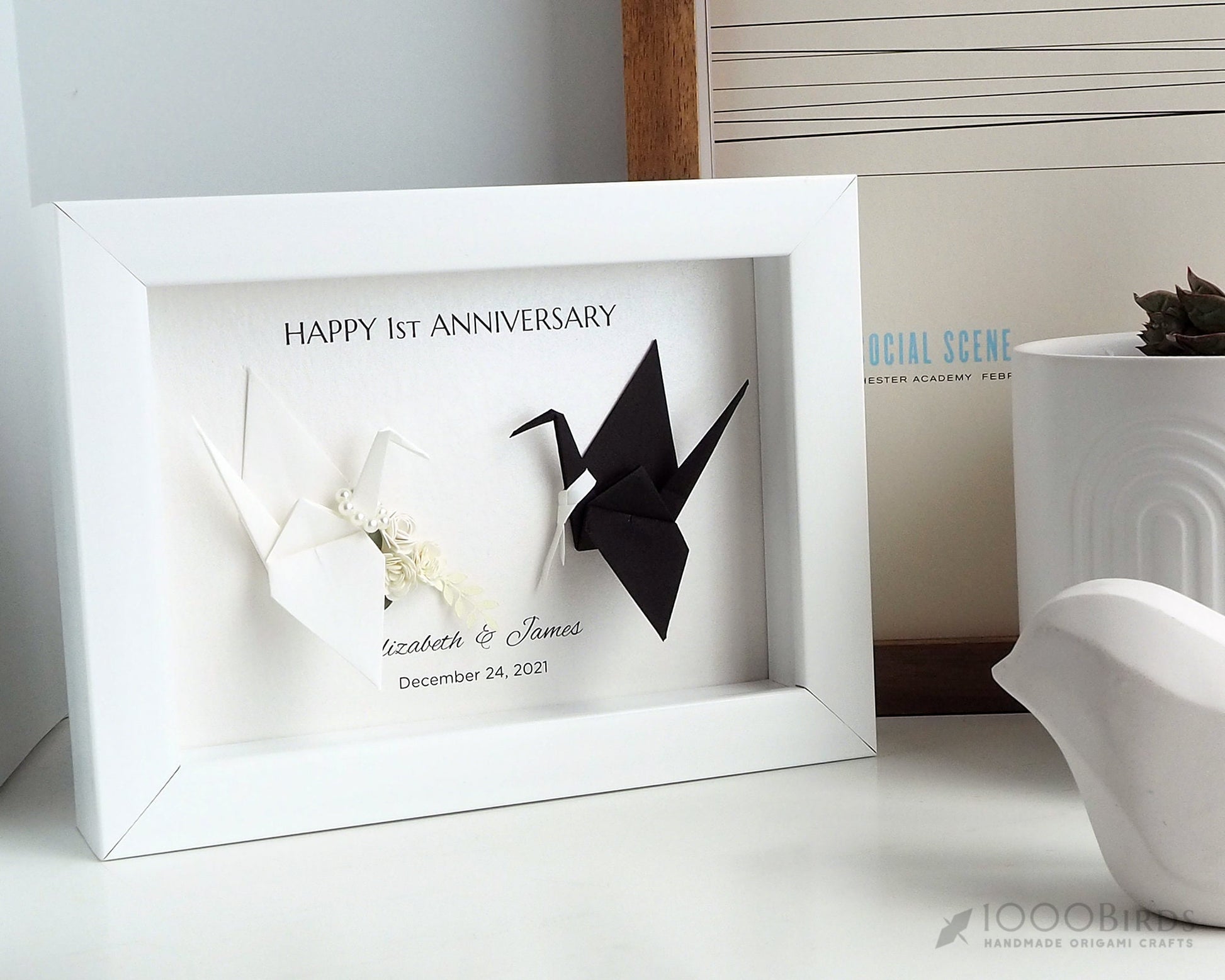Customized Paper Flower Bouquet with Origami Crane – Framed Art for First Wedding Anniversary / Paper Anniversary Gift