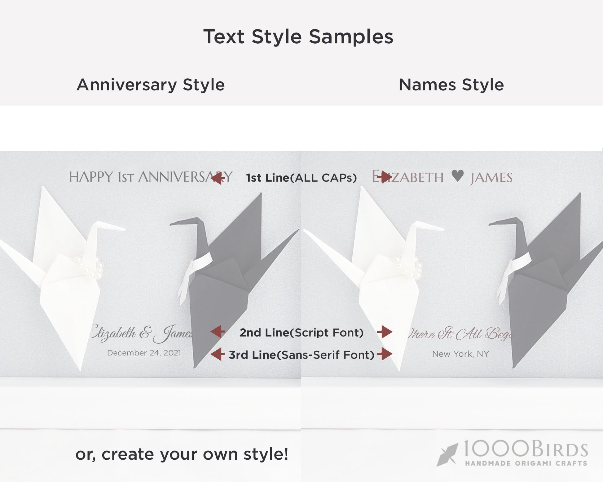 • Choose a text style from the two samples, or write your own. (Text style will match the samples.)