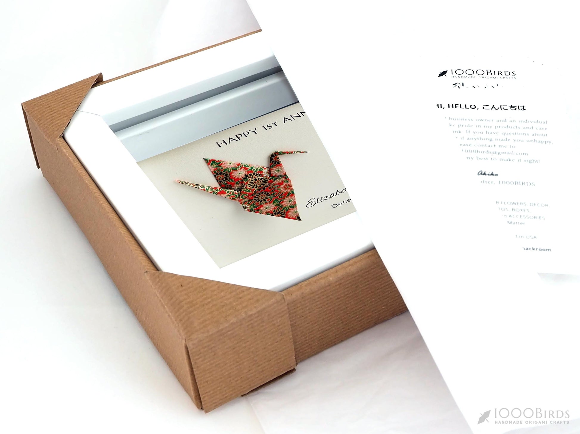 • Your Origami Crane Art will arrive in a brown Kraft box, securely packed with air pillows and/or packaging paper. It will be shipped via USPS Priority, and you can track the parcel with a tracking number.