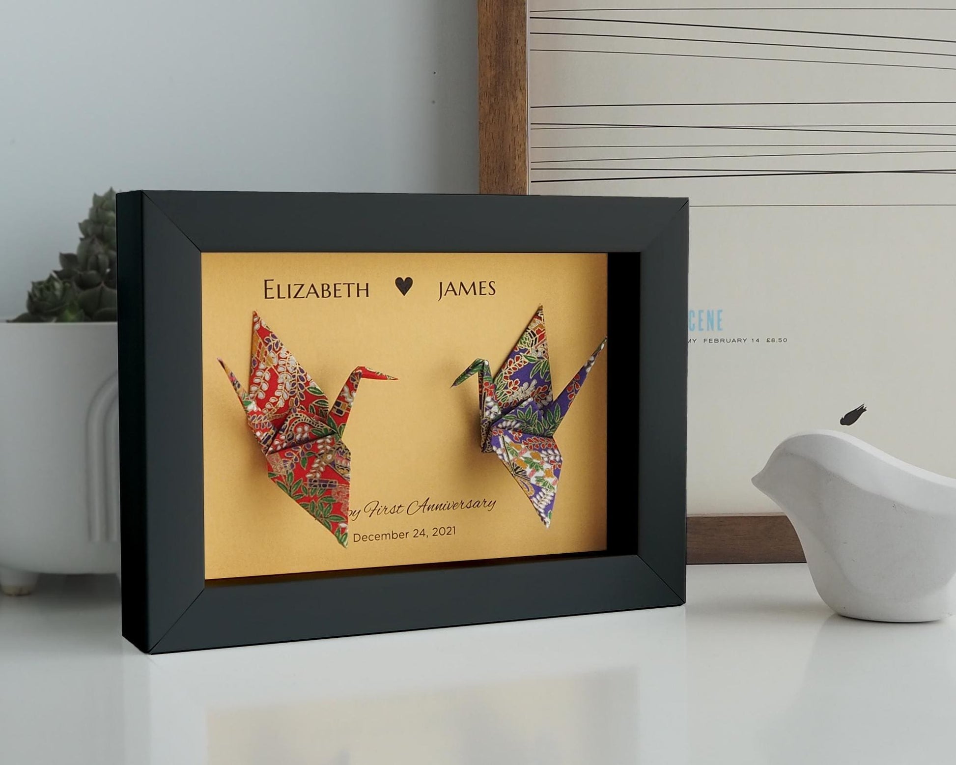 • Origami Frame, Personalized Love Birds