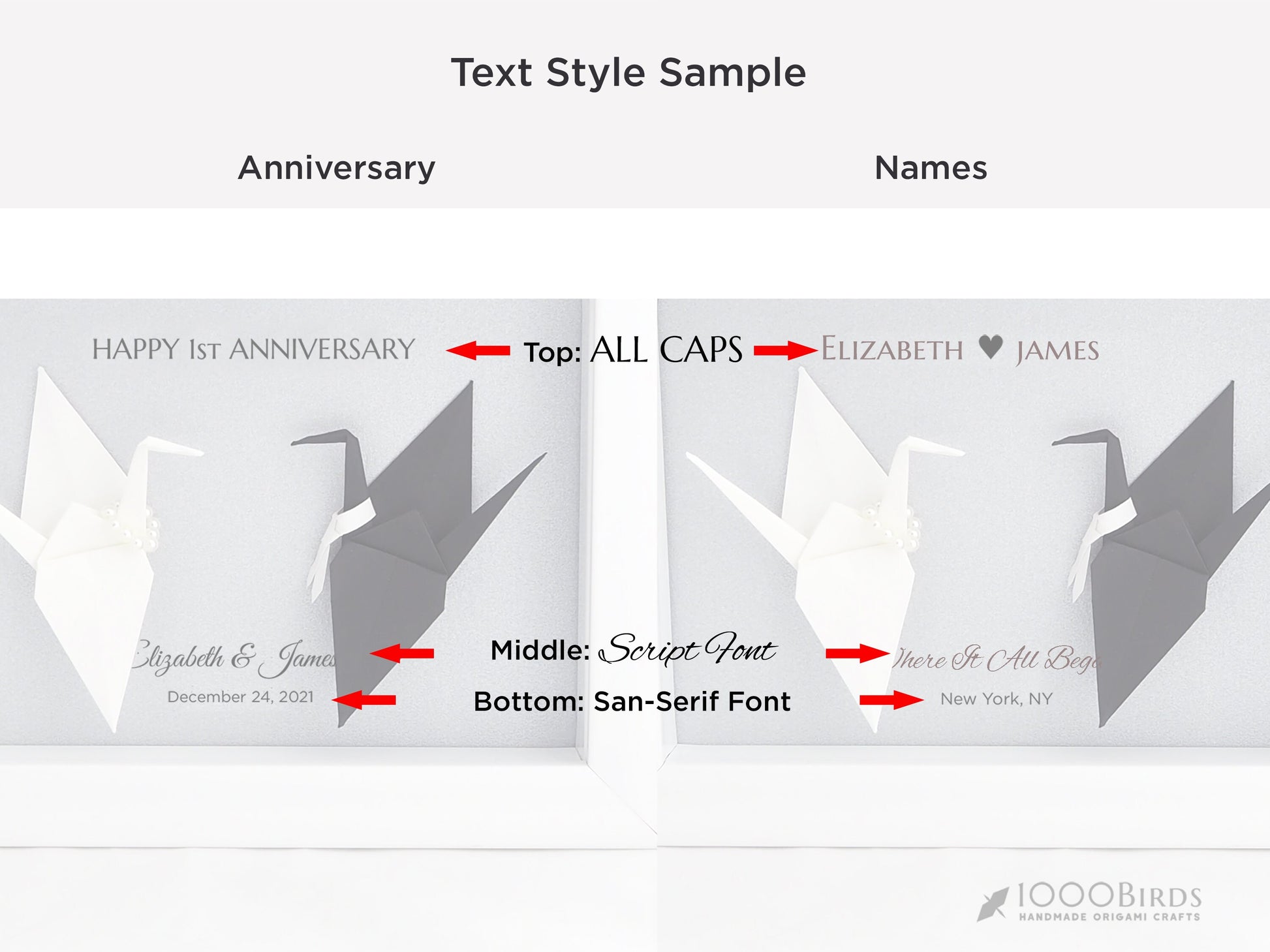 • Choose from 2 text styles: Happy 1st Anniversary OR Names Style, please contact me if you want to use your words.