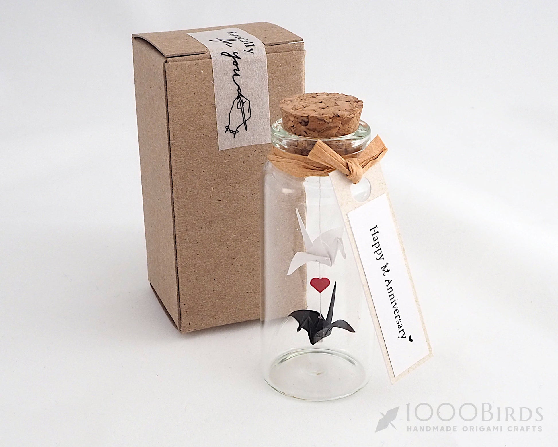 Personalized “I Carry Your Heart” Origami Crane Mini Bottle – Christmas Ornament & Paper Anniversary Keepsake