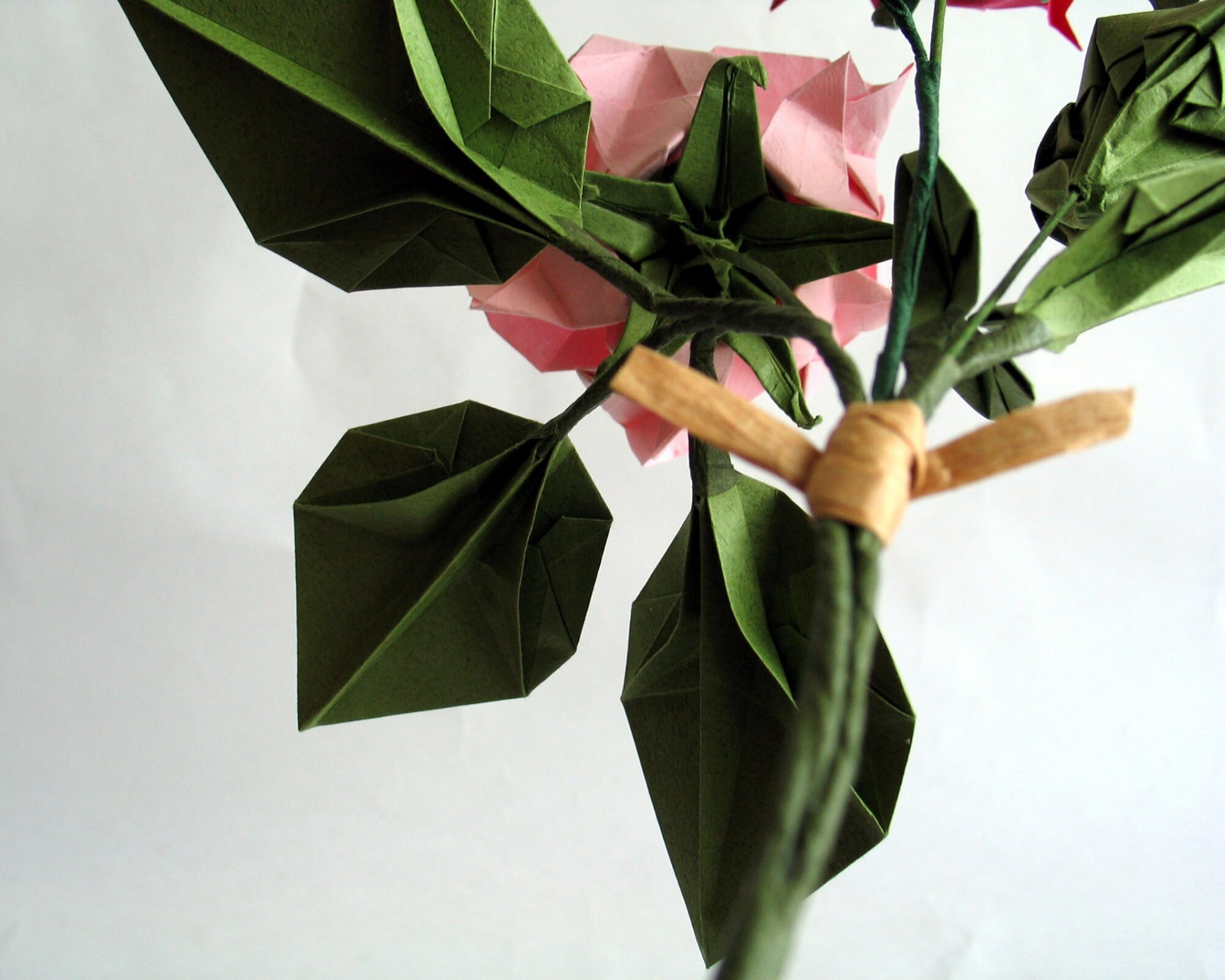 - DESIGNER'S BOUQUET PINK 2 Stem Origami Roses with A Rose Bud
