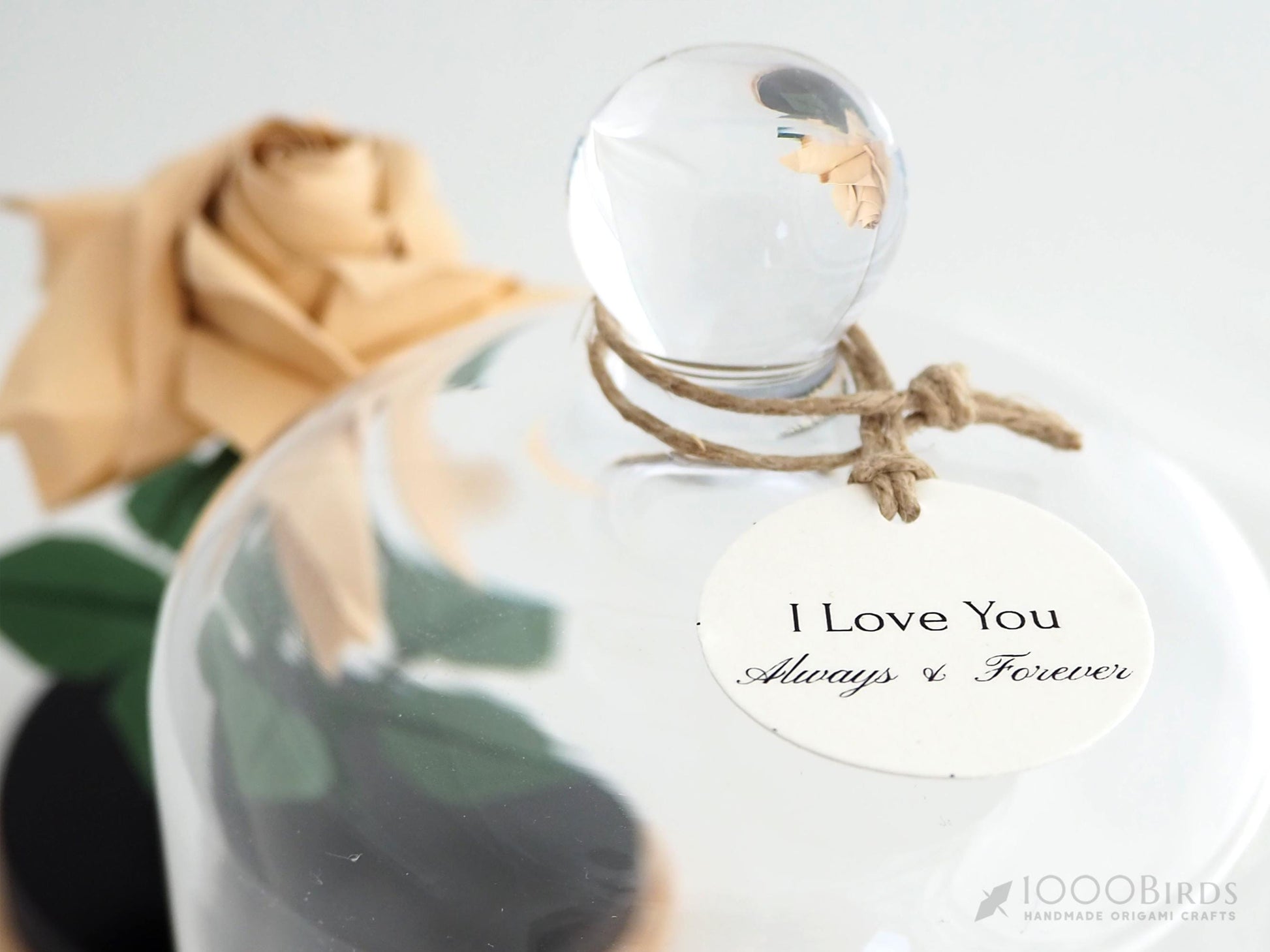 Like love folded into paper, each rose is carefully hand-folded from authentic Japanese paper, a symbol of beauty, patience, and devotion in every delicate petal. Encased in a glass and wood dome, it stays dust-free and perfect, ready to brighten any room or heart.