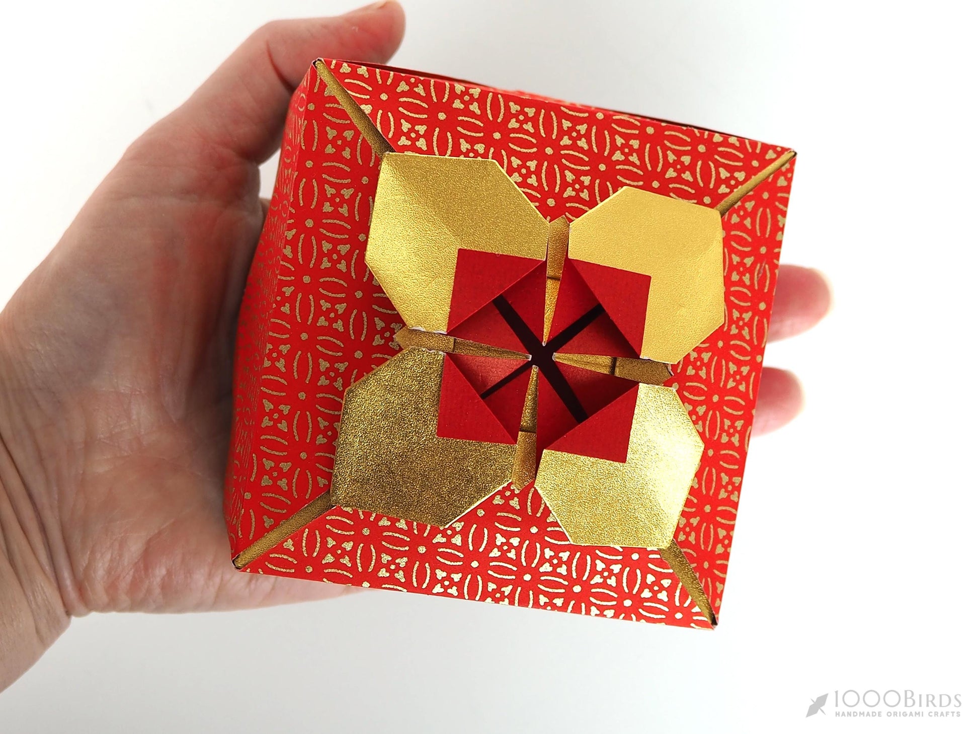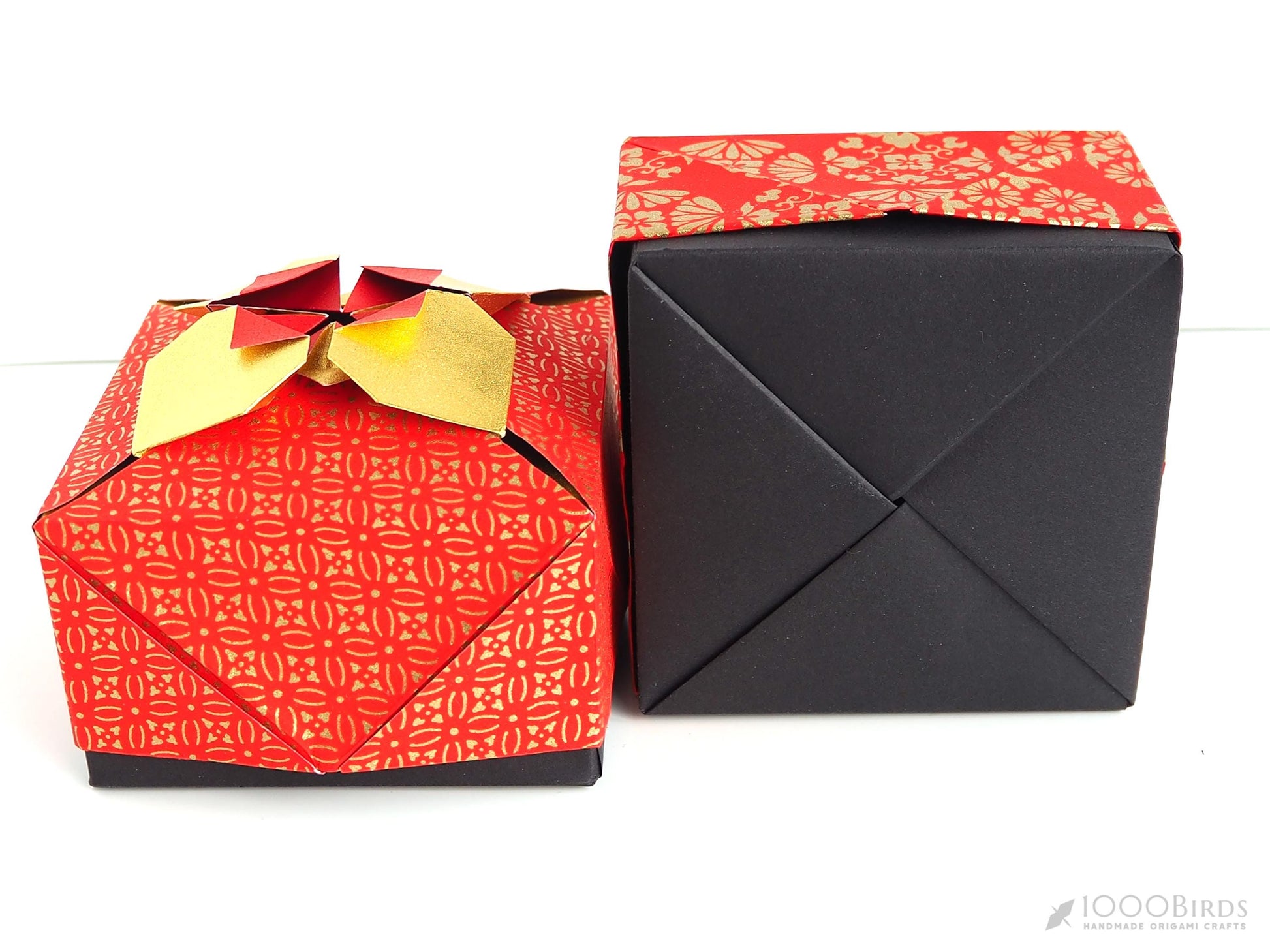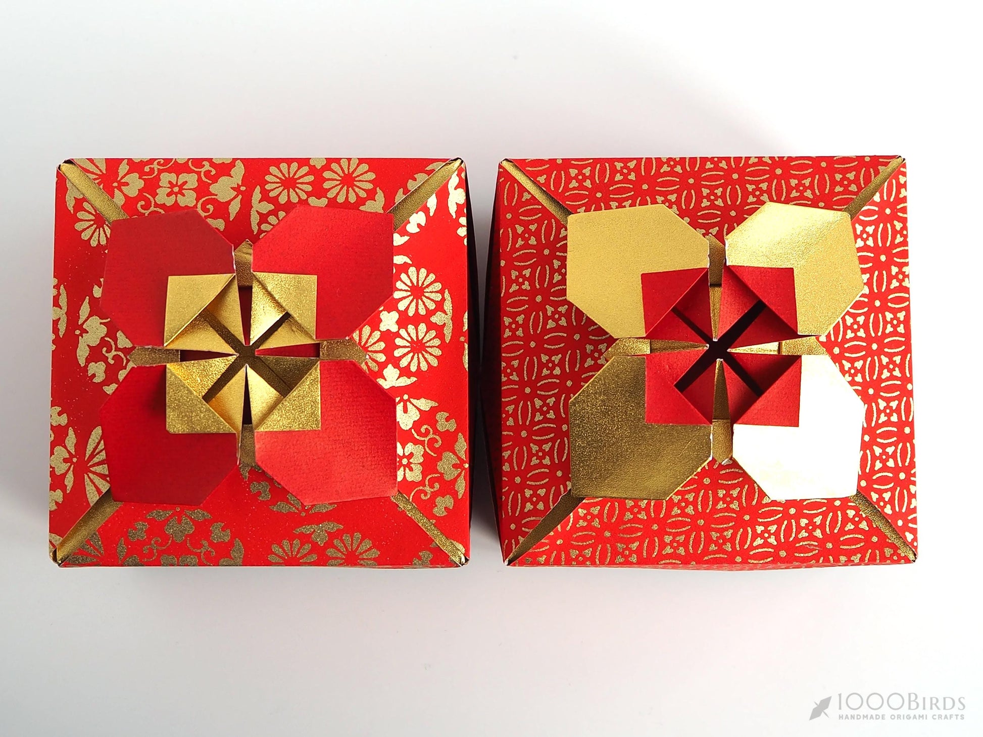 Vermilion & Gold Origami Gift Box: Japanese Embossed Paper Box