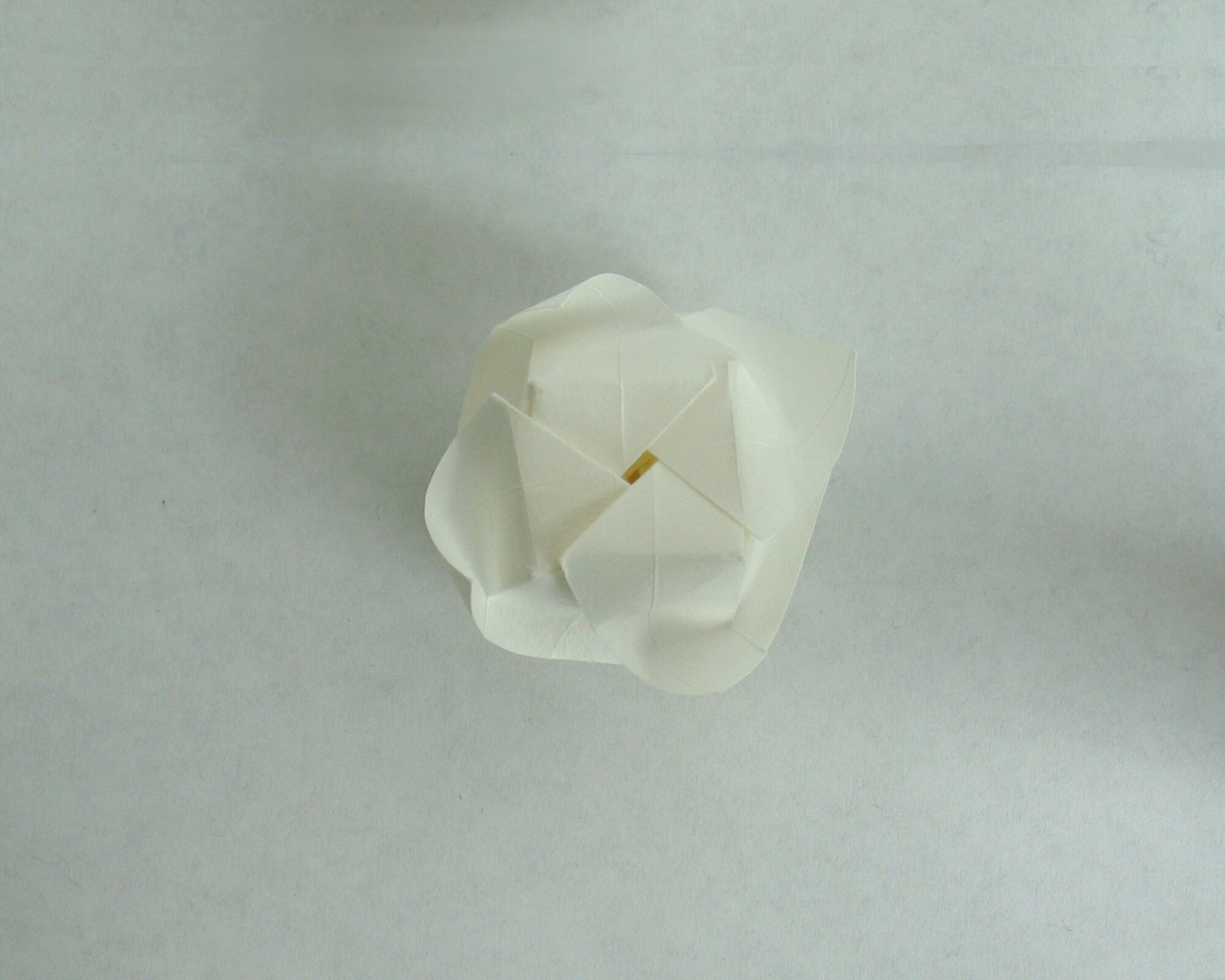 The rose head and calyx are folded by me with traditional Japanese Origami techniques without glue, tape, and scissors.