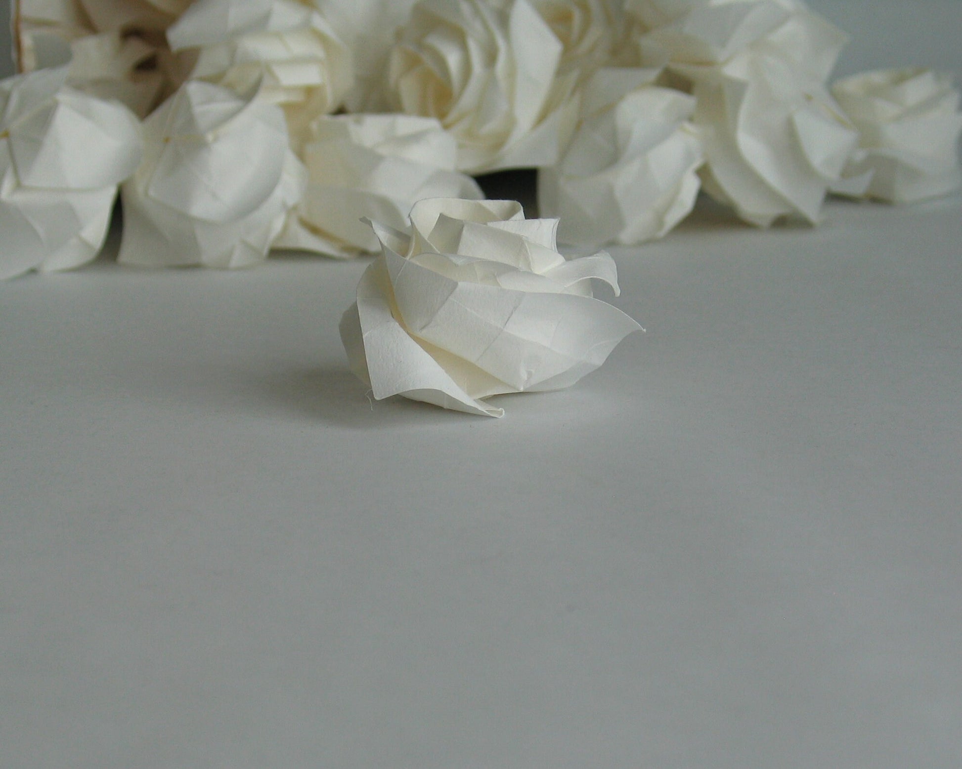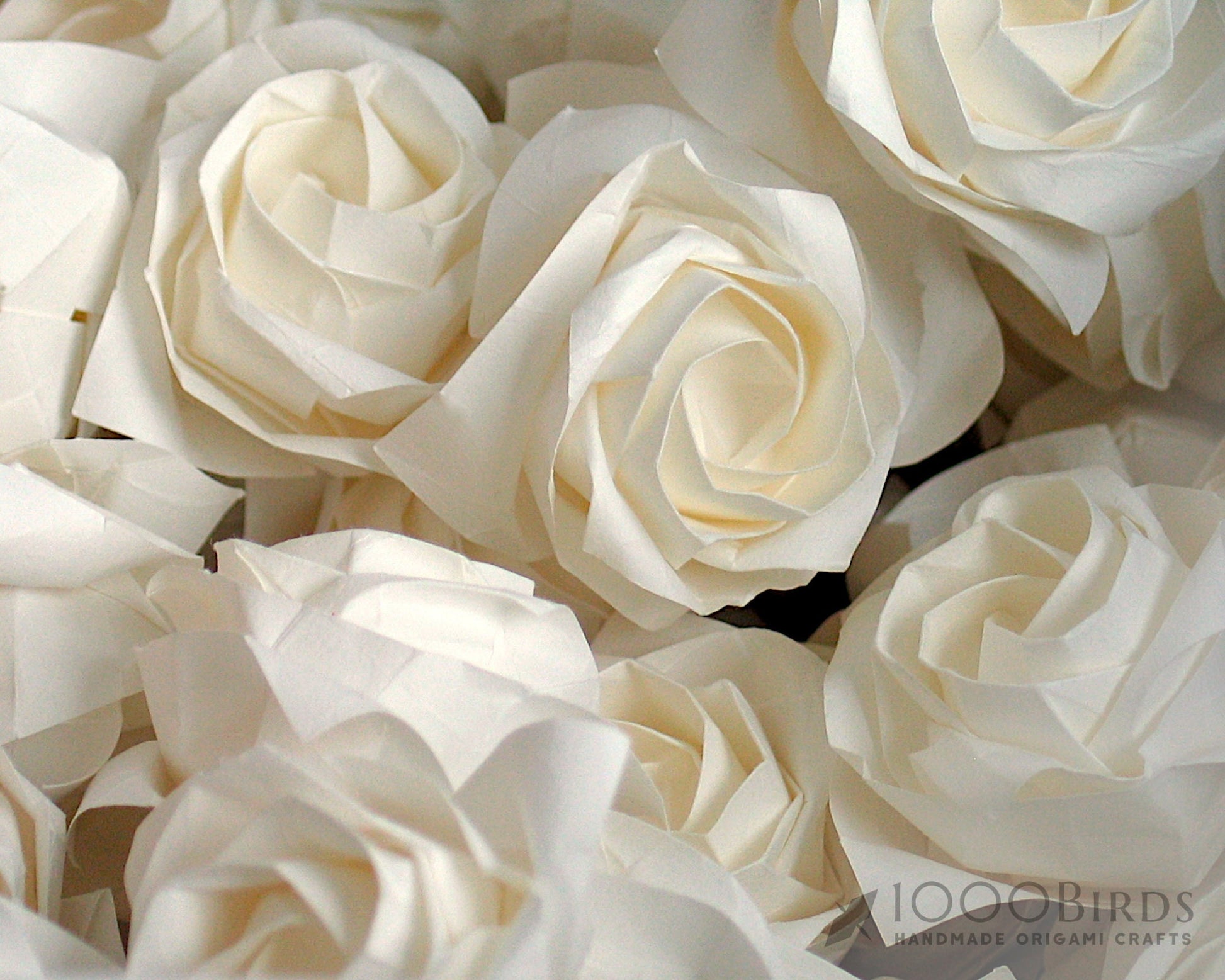 White Origami Rose Head: Handmade Japanese Paper Flower, DIY Decor